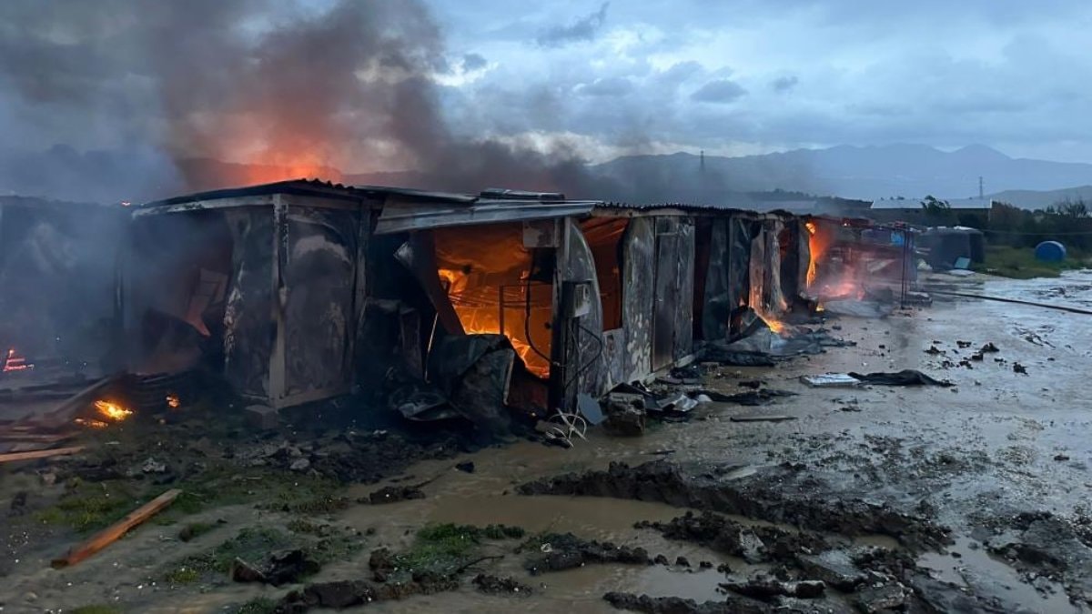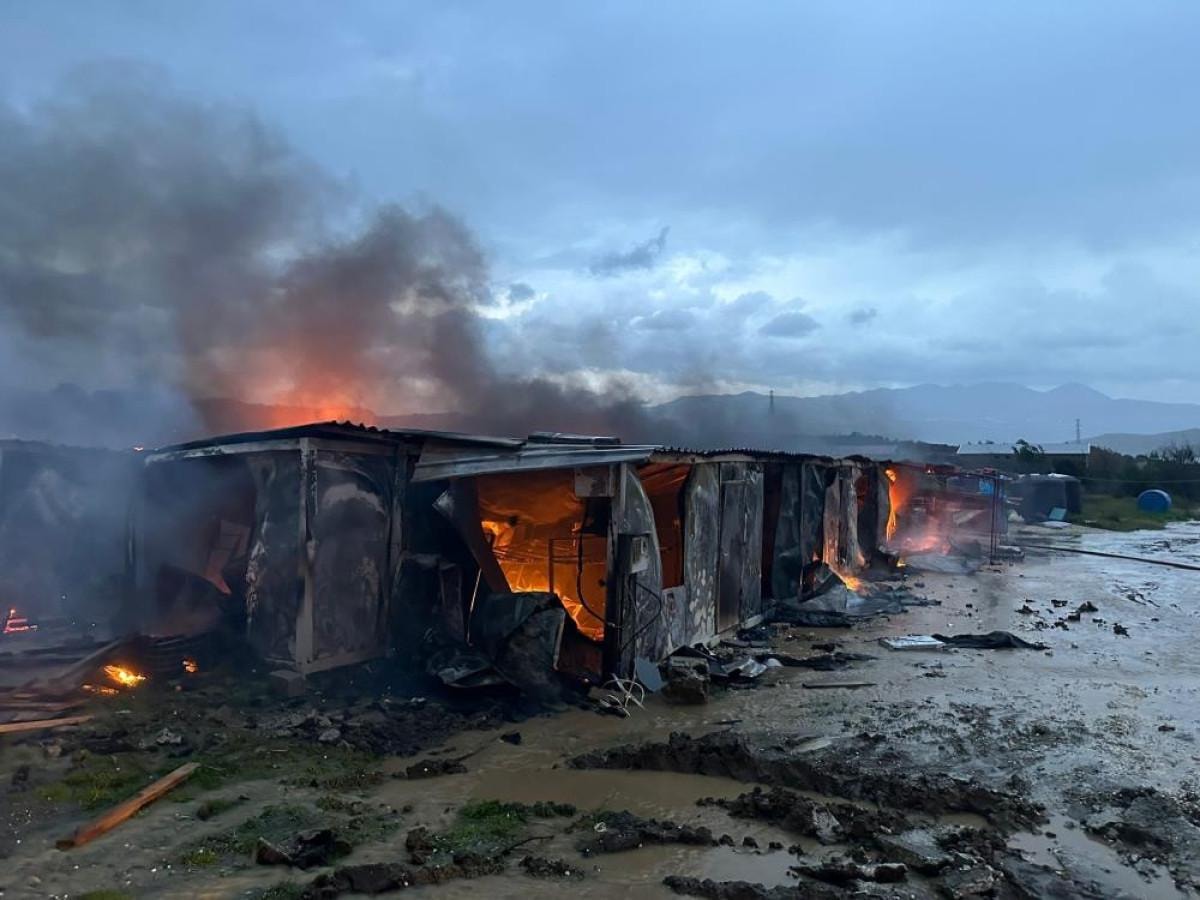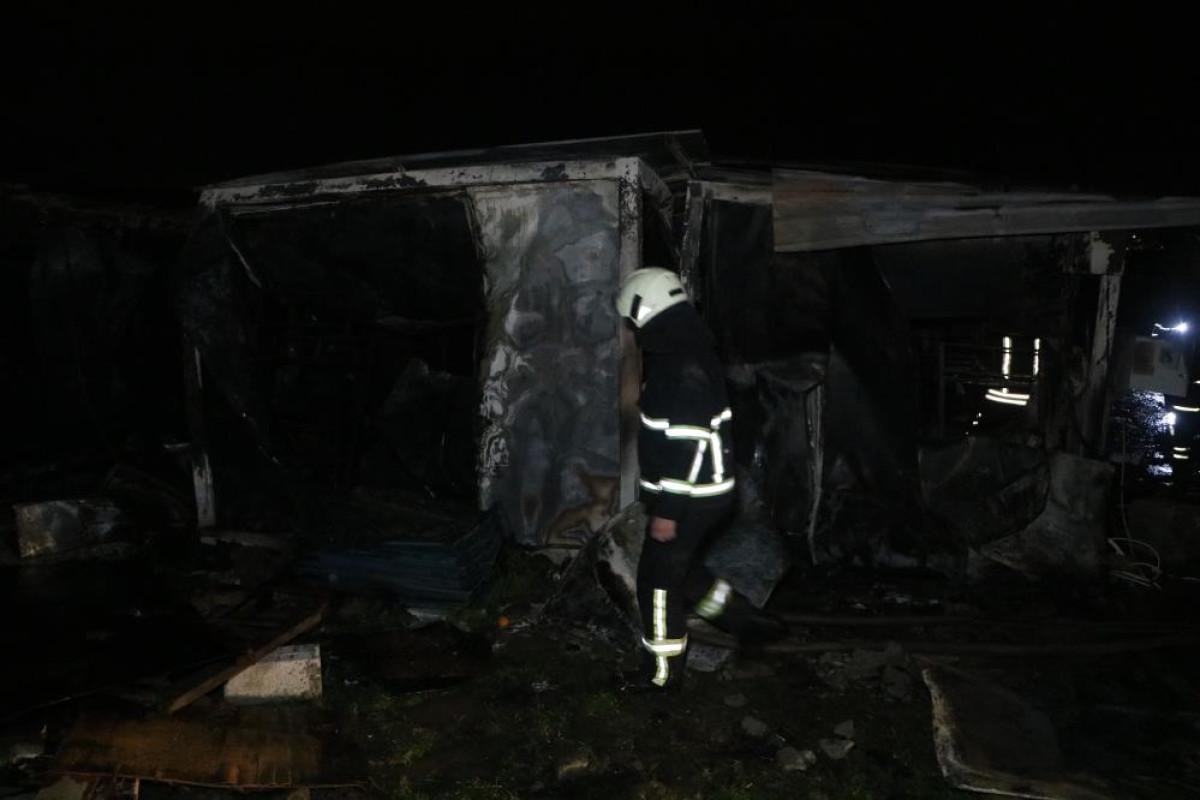 Hatay'ın Defne ilçesi Üzengili Mahallesi'ndeki inşaat şantiyesinde, işçi konteynerlerinde bilinmeyen bir sebep nedeniyle yangın çıktı.
