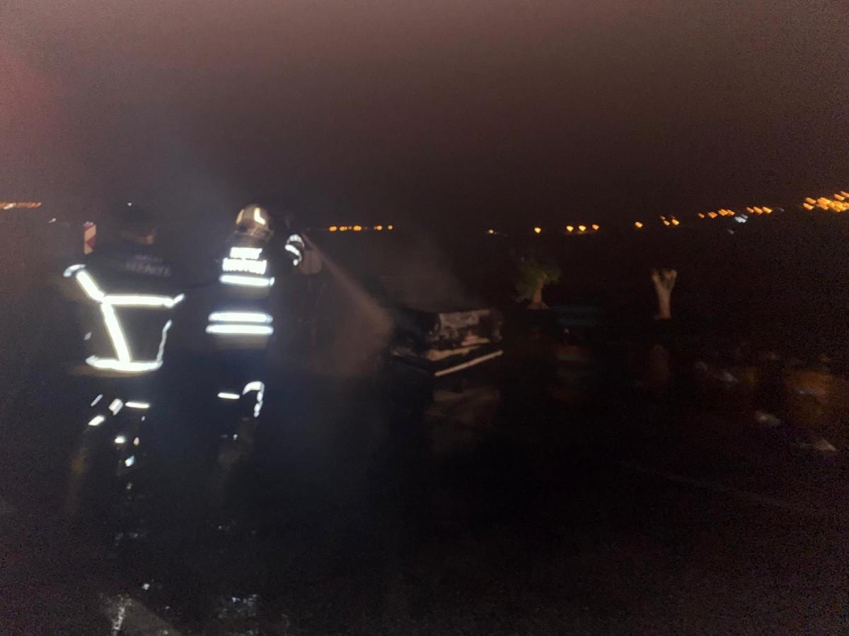 Alevler, itfaiye ekipleri tarafından kontrol altına alınırken araç hurdaya döndü.