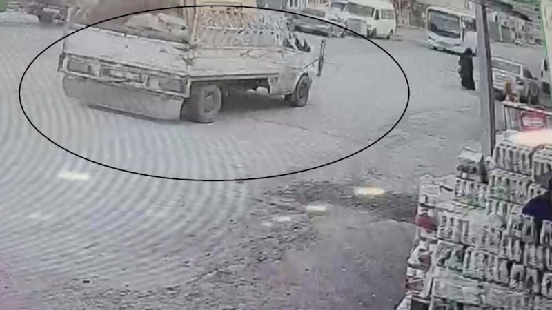 Karşıdan gelen pikap dönüş yaparken kapağı açıldı ve karşıdan karşıya geçen vatandaşımızın ensesine çarptı.