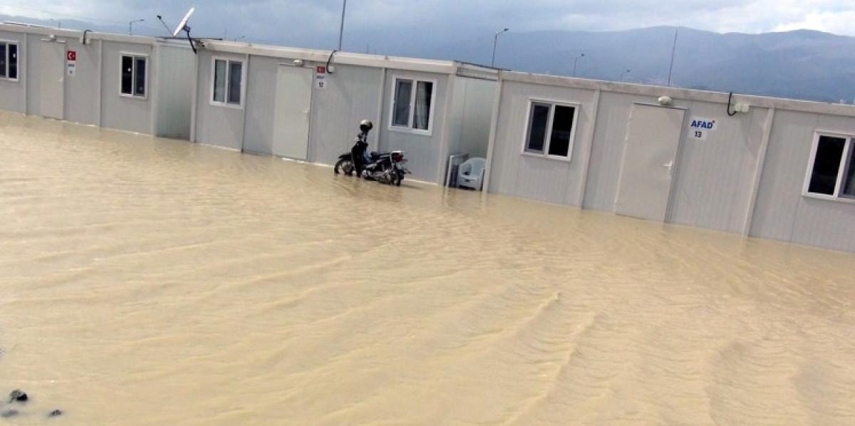 Yağışla birlikte yollar göle döndü. Bazı konteyner kentler sele teslim oldu. Araçların ilerlemekte güçlük çektiği kentte tarım arazileri de su altında kaldı.