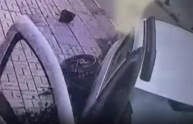 Kaza anı bir iş yerinin güvenlik kamerasına yansıdı.