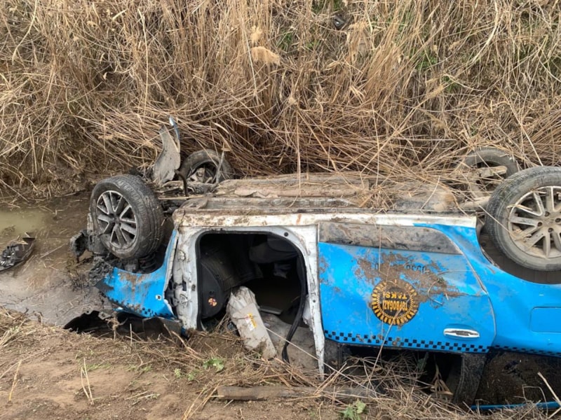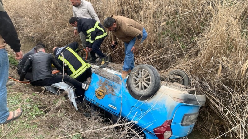 Taksi sürücüsü Paşa Yardımcı, kullandığı ticari taksinin kontrolünü kaybetmesi sonucu yol kenarında bulunan sulama kanalına devrildi.
