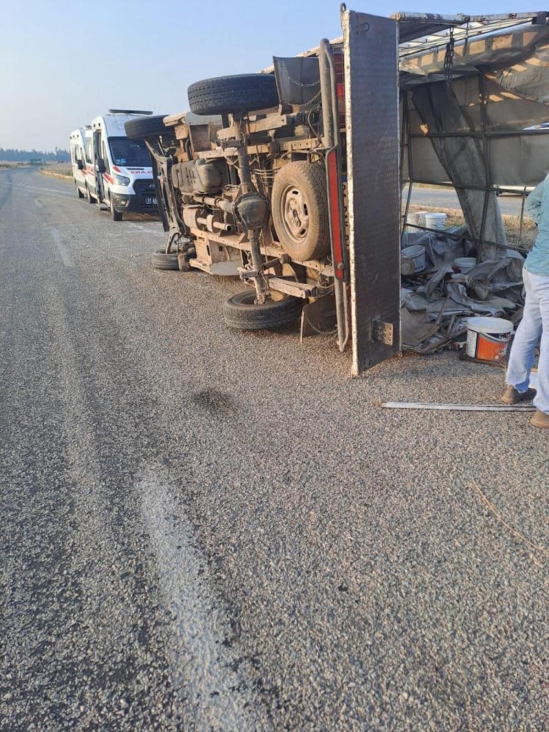 Tarım işçilerini taşıyan Ford marka 31 RAK 94 plakalı kamyonet, sürücünün direksiyon hakimiyetini kaybetmesi sonucu devrildi.