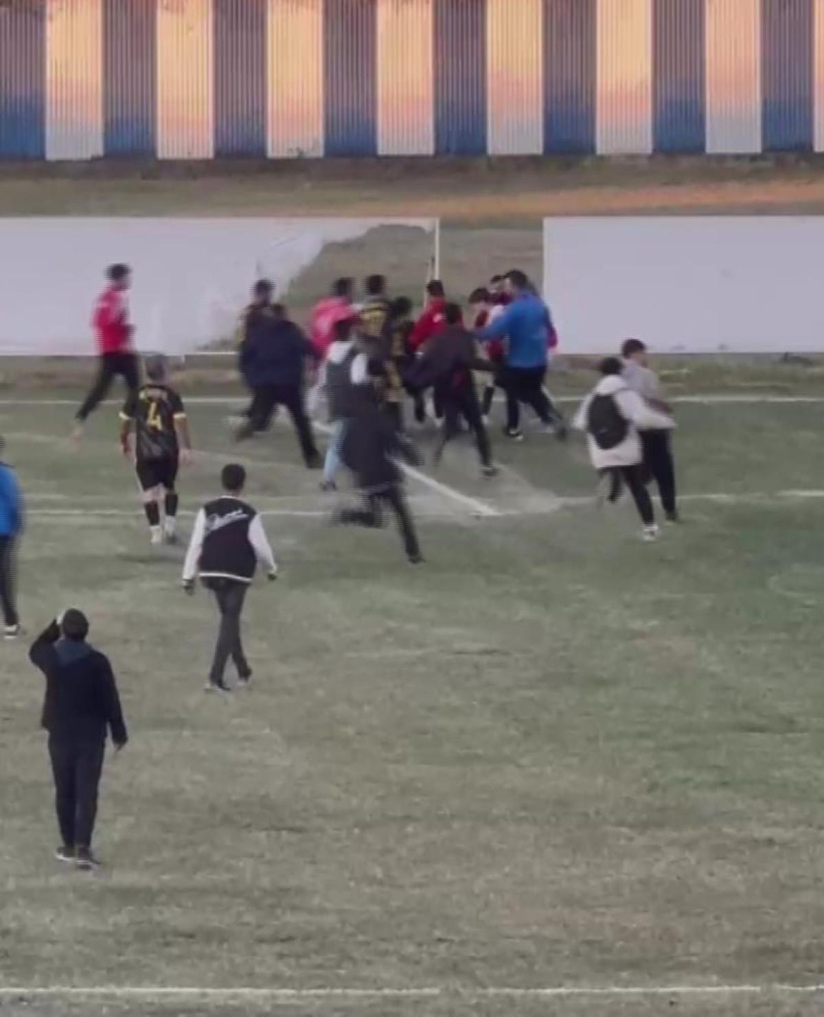 Futbolcuların arasında tekmelerin ve yumrukların havada uçuştuğu kavgaya yöneticiler ve taraftarlar da karıştı.