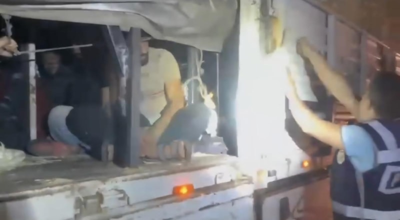 Hatay İl Emniyet Müdürlüğü ekipleri düzensiz göçle mücadele çalışmaları kapsamında Antakya-Altınözü yolunda takibe aldıkları tırı durdurdu.