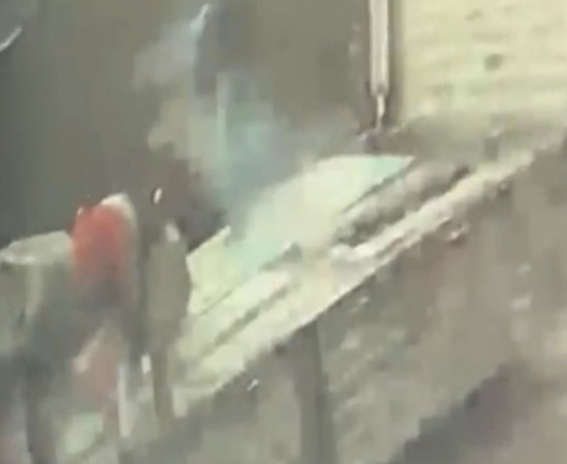Öte yandan yıldırımın düştüğü anlar, iş yerinin güvenlik kamerasınca saniye saniye kaydedildi.