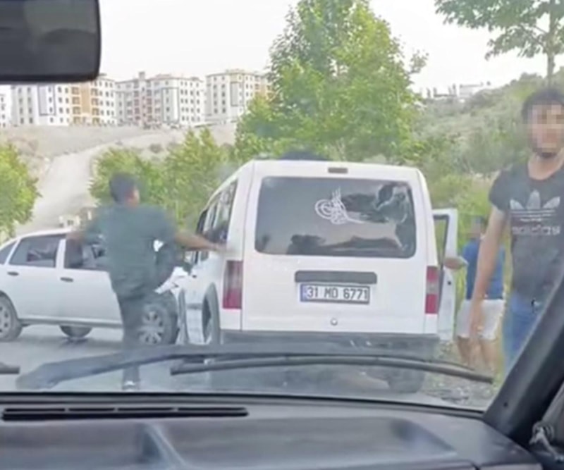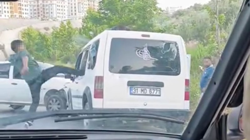 Hatay'da yaşanan trafik kazası sonrası bir grup, çarpıştıkları araca saldırarak vatandaşlara korku dolu anlar yaşattı.