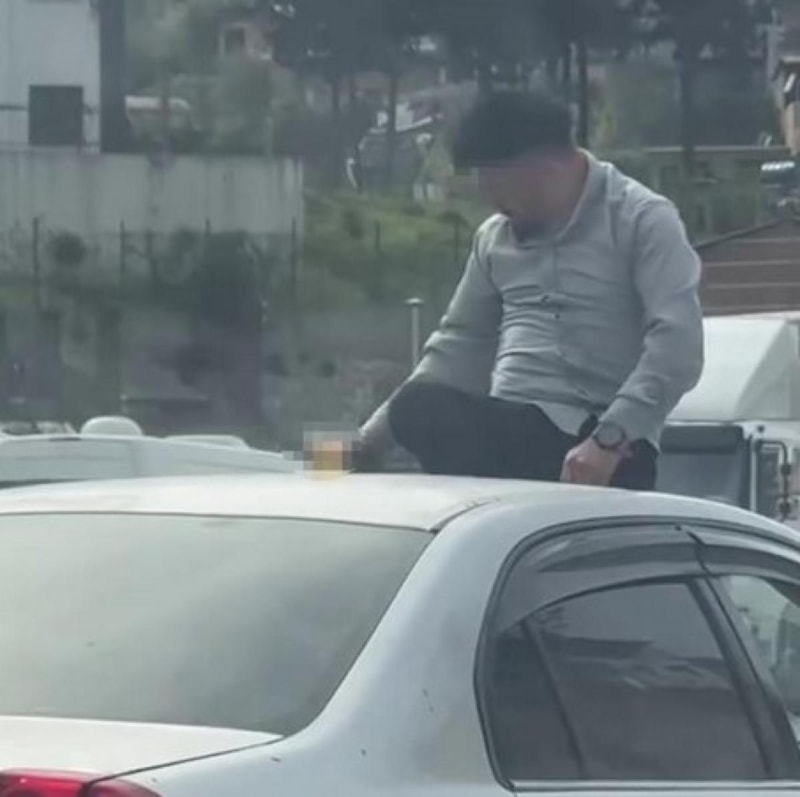 Seyir halindeki üstü açık bir otomobilin üzerine çıkarak alkol tüketen kişinin bulunduğu aracın sürücüsüne 21 bin TL para cezası kesildi.