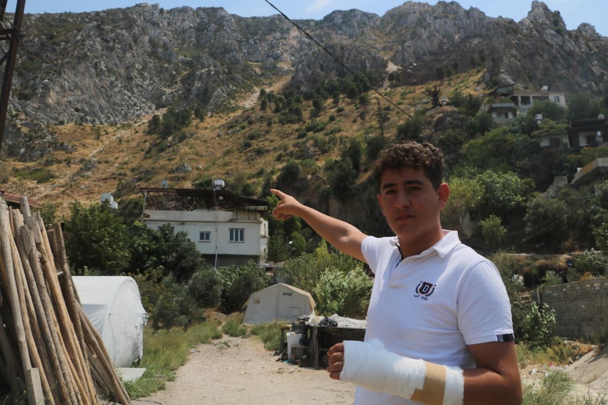 Yangın çıktığı zaman biz müdahale etmek istemiştik, dağa doğru çıktık. Biraz müdahale ettikten sonra kayalar koparak aşağı düştüler ve elime çarptı. Kayanın üstünden kendimi arka tarafa atmasaydım, kafama veya başka bir yerime değebilirdi. Şu an için elimi kurtardığım için şanslıyım.