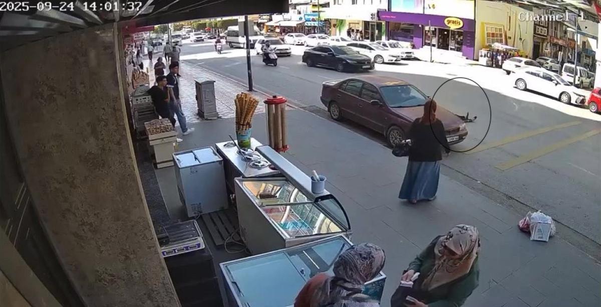 - Kaza anı güvenlik kamerasına yansırken, kazada yaralanan kadın hastaneye kaldırıldı.