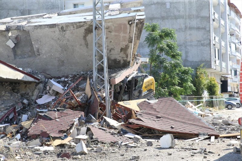 Arsuz ilçesinde, ağır hasarlı bir binanın yıkımı sırasında yaşanan çökme sonucu iş makinesi operatörü yaralandı.