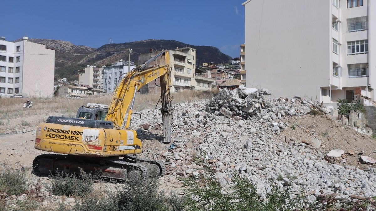 Kahramanmaraş merkezli depremlerde büyük yıkımın yaşandığı Hatay'da mahkeme süreci tamamlanan binalar yıkılmaya devam ediyor.