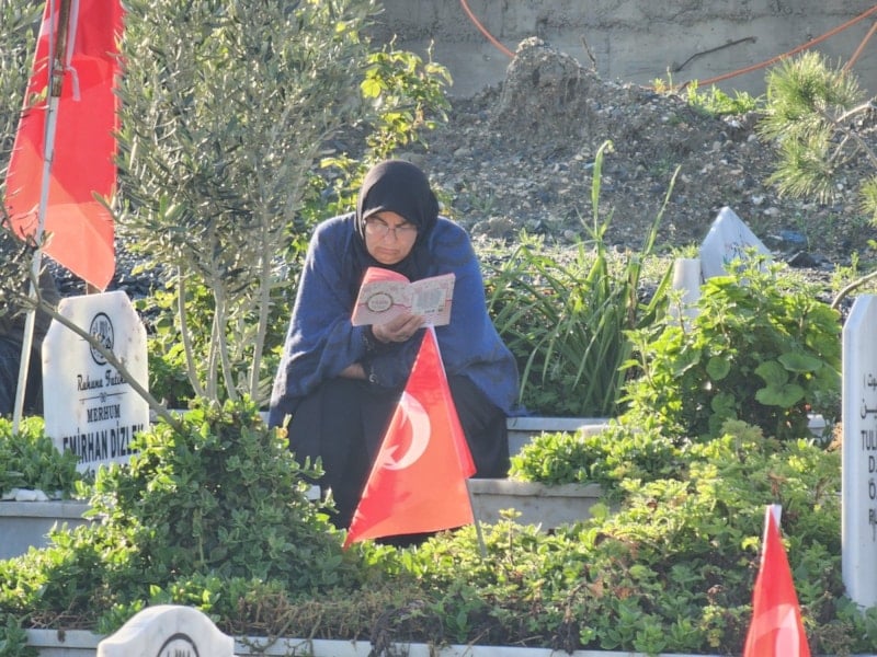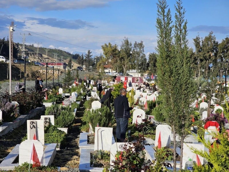 Ramazan Bayramı'nın birinci gününde yakınlarının mezarlarını temizleyip, çiçek bırakan Hataylılar, dua etti. Aileler, depremde ölen çocuklarının mezarlarına oyuncak koyarken, mezarlıkta duygusal anlar yaşandı.
