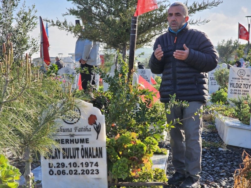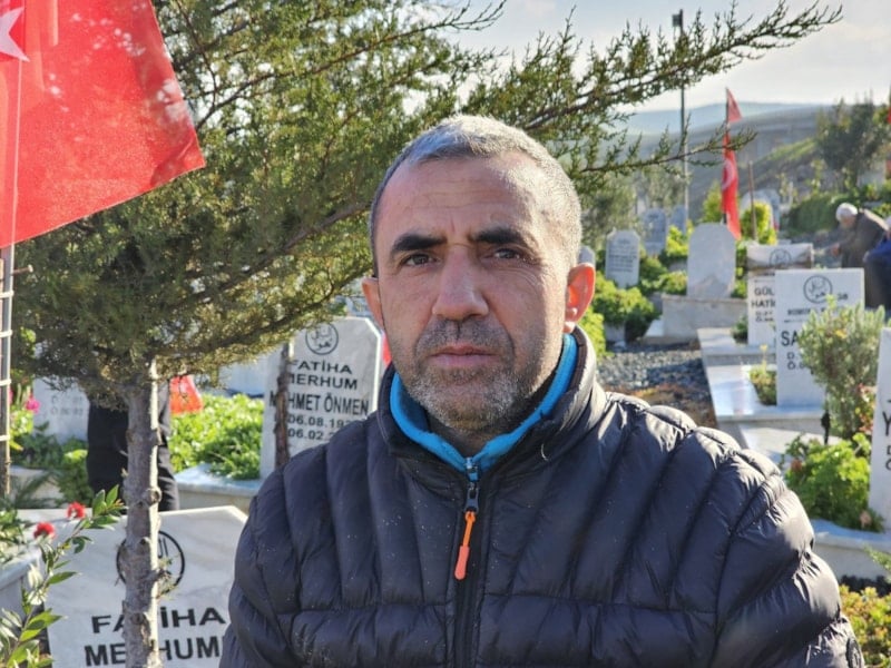 Depremde eşini, kızını, anne ve babasını kaybeden İbrahim Önalan, "Her yıl olduğu gibi mezarlık ziyaretine geldim, her zaman buradayım, bir bayram geldi yine onlarsız, sessiz ve sedasız şekilde.