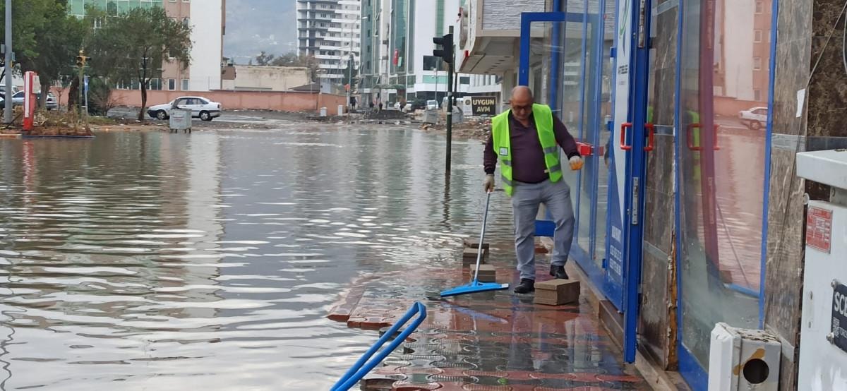 Dün gün boyu süren ve gece şiddetini artıran sağanak, İskenderun'da hayatı olumsuz etkiledi.