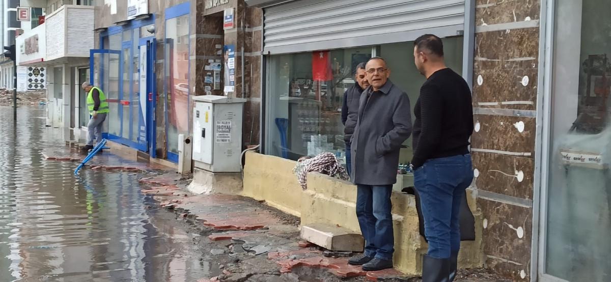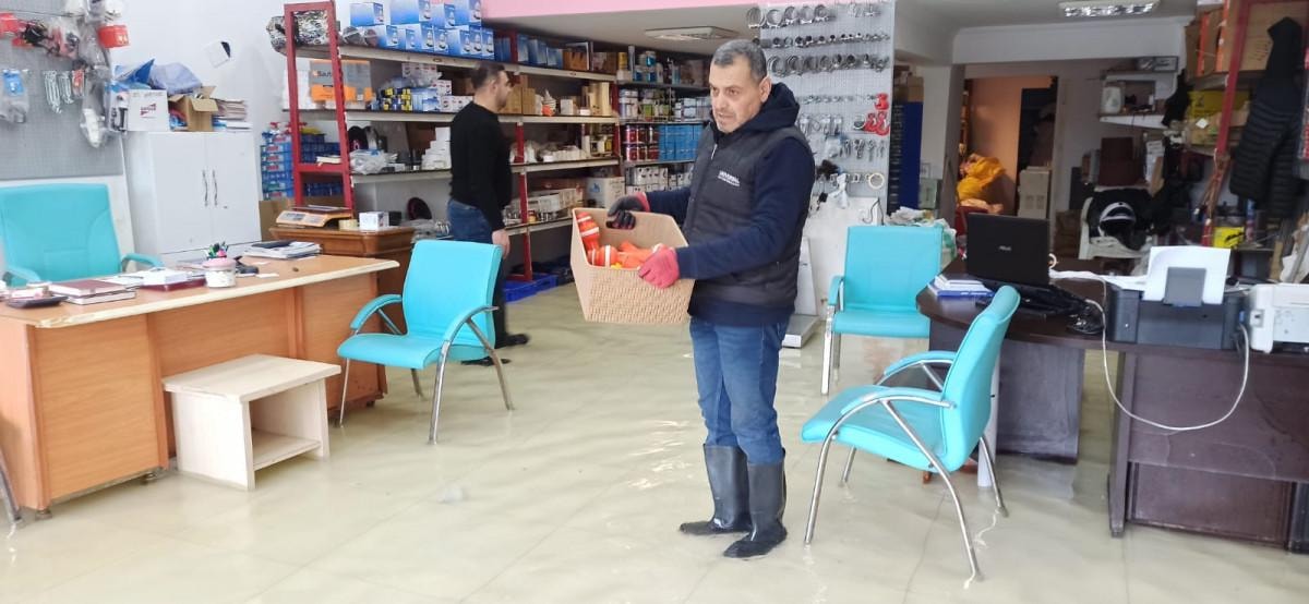 Caddedeki onlarca iş yerini su bastı. Sabah iş yerlerine gelen esnaf, temizlik yaptı.
