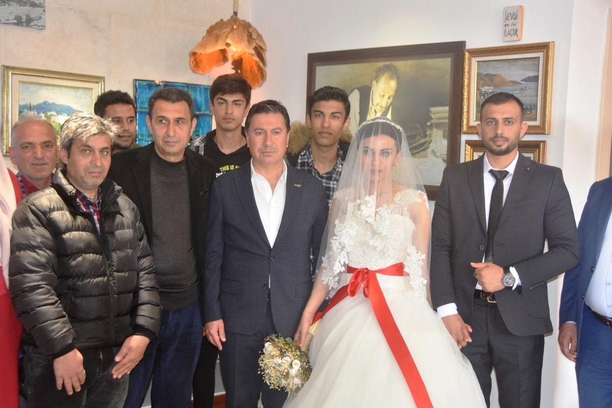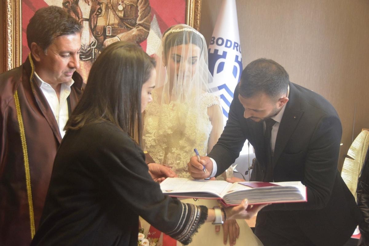 Bodrum Otelciler Derneği Başkanı Ömer Faruk Dengiz ve otel çalışanları da çifte evlenmeleri için destek verdi. Çiftin nikahı Bodrum Belediye Başkanı Ahmet Aras’ın makamında kıyıldı. Duygusal anlar yaşanan nikah törenine, Bodrum Belediye Başkanı Ahmet Aras, BODER Başkanı Ömer Faruk Dengiz, çiftin ailesi ve yakınları katıldı.