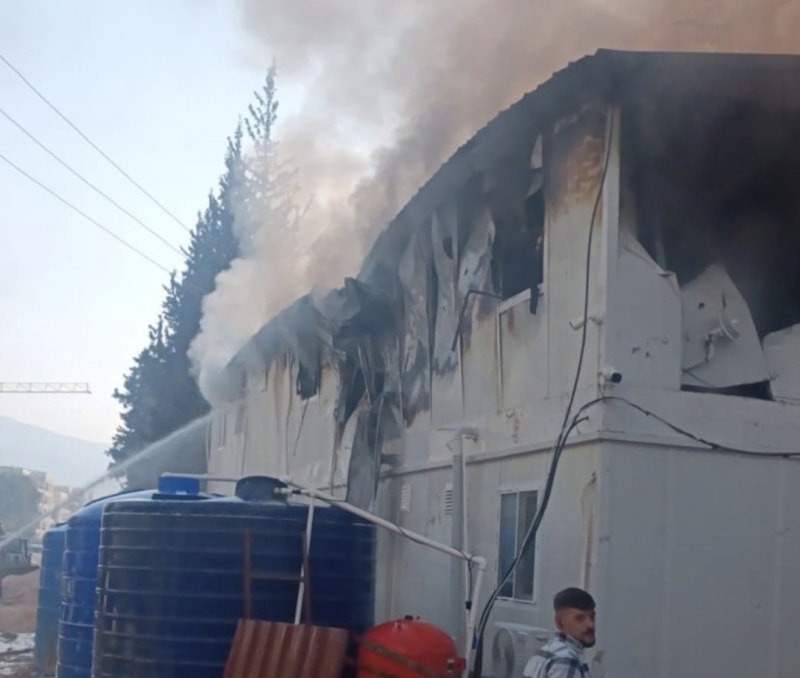 Yangında herhangi bir can kaybı ya da yaralanma yaşanmazken, konteyner yatakhane kullanılamaz hale geldi.