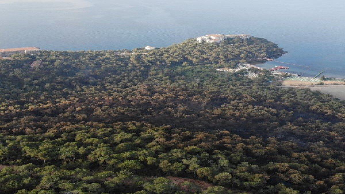 Uzun süren çalışmalar sonrasında söndürülen ormanlık alanın son hali, havadan drone ile görüntülendi. Günün ışıması ile yangının verdiği zarar da ortaya çıktı.