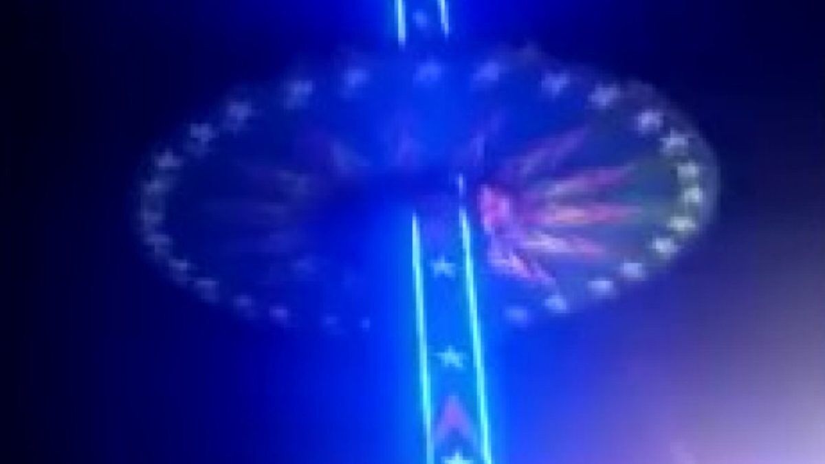 Sosyal medya paylaşılan görüntüde, dönen salıncağın yaklaşık 25 metre yükseklikten hızla düştüğü ve insanların korkuyla çığlık atıp kaçtığı görüldü.