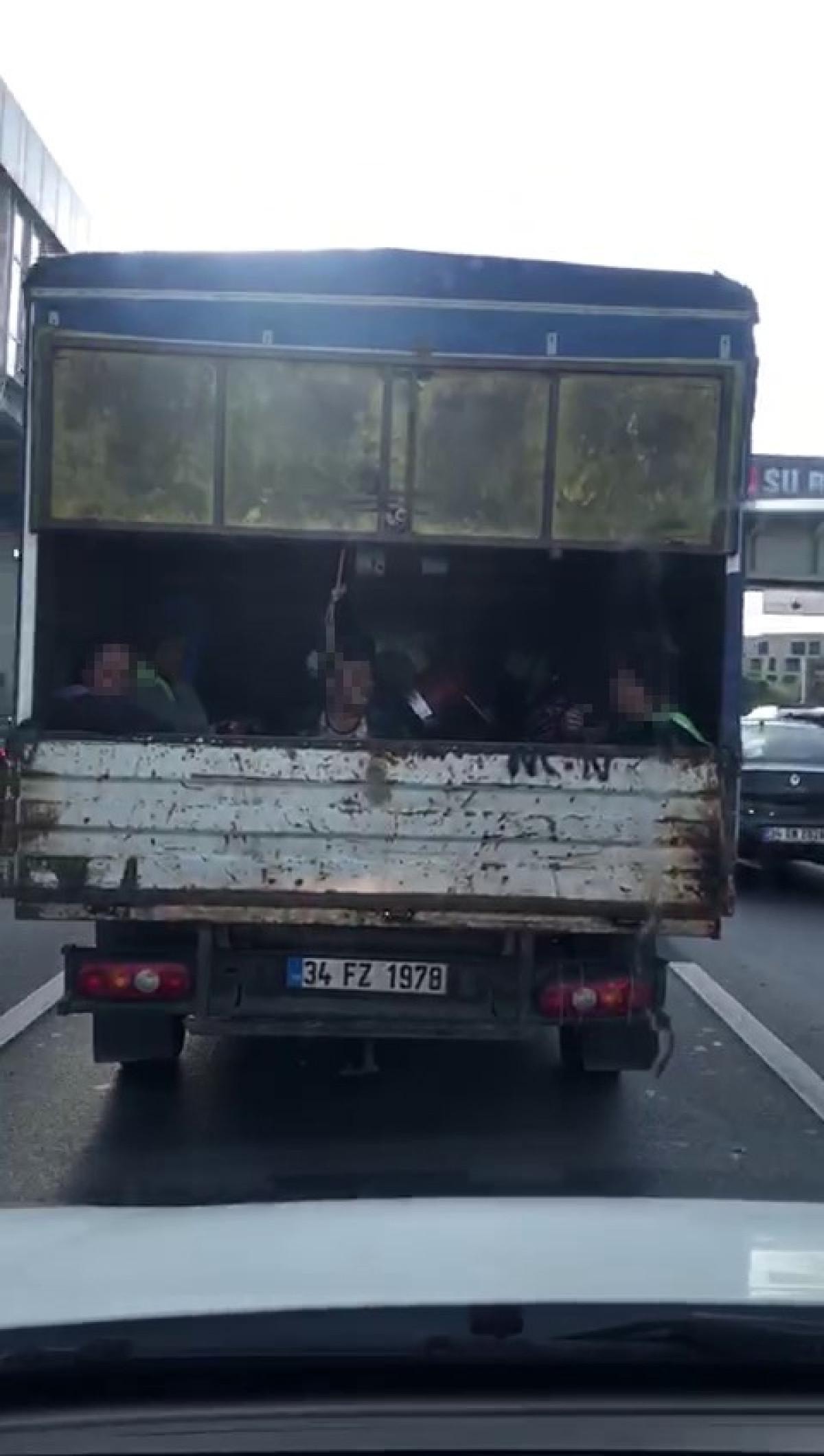 İddiaya göre İstanbul Büyükşehir Belediyesi'ne (İBB) bağlı İstanbul Ağaç ve Peyzaj A.Ş.'nin trafikte yaptığı peyzaj çalışmalarına işçi olarak çalışan kadınlar, kamyonet kasasında karga tulumba taşındı.