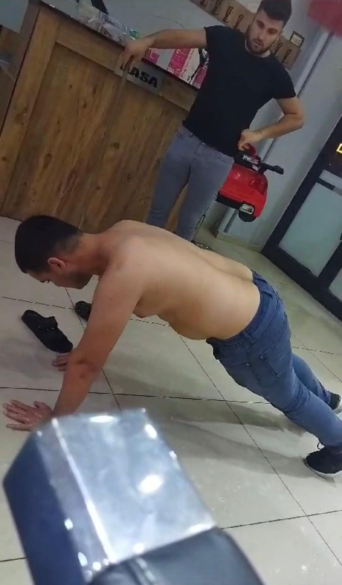 Döner'in çıraklarına şınav çektirdiği ve süründürdüğü anlar bir müşteri tarafından cep telefonuyla kaydedildi.