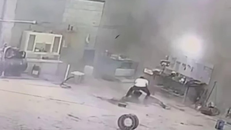 Kentteki bir iş yerinde, hava basılan lastiğin patlamasının ardından bir kişi hayatını kaybetti. Olay anı, iş yerinin güvenlik kamerasına yansıdı.