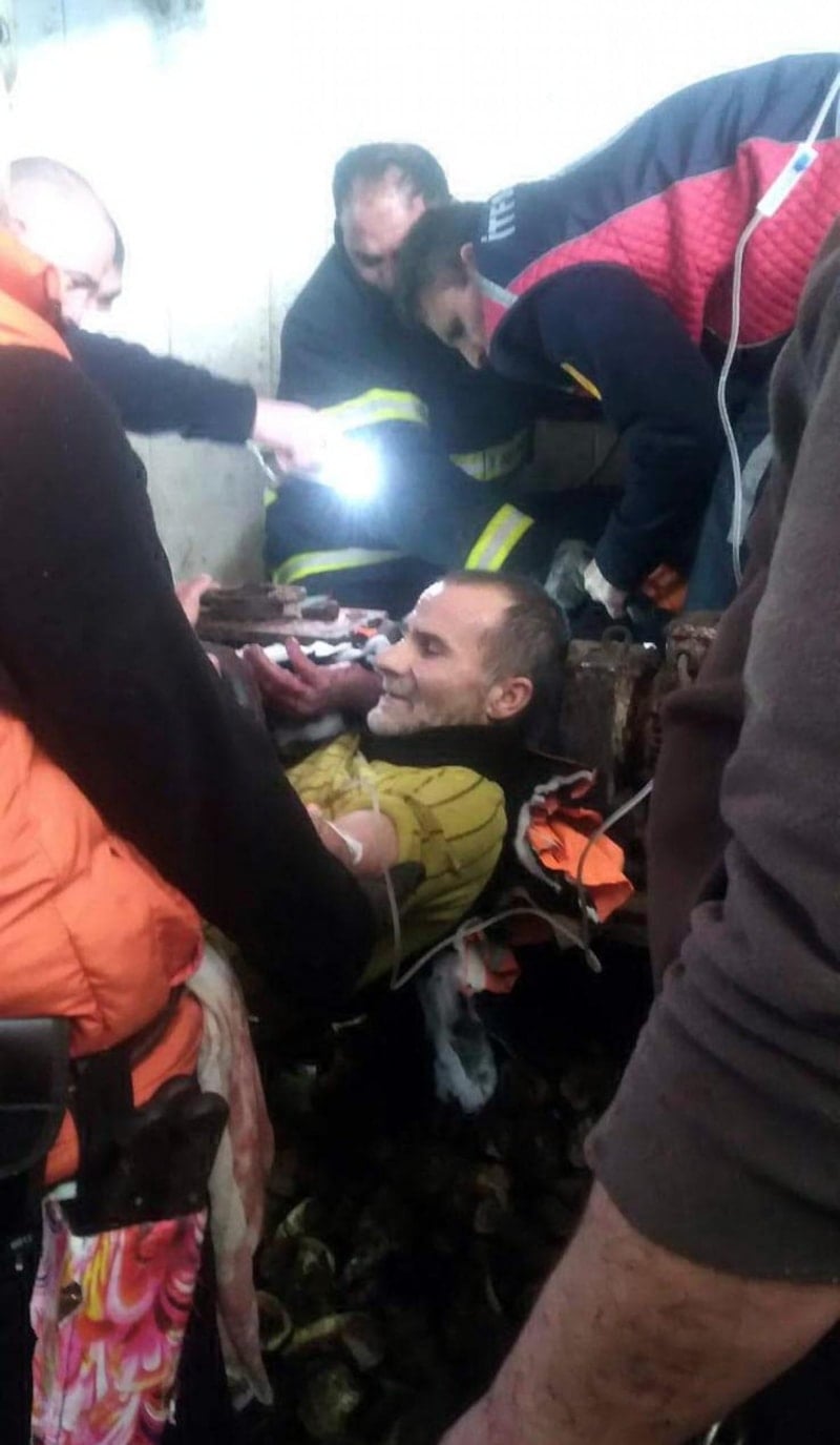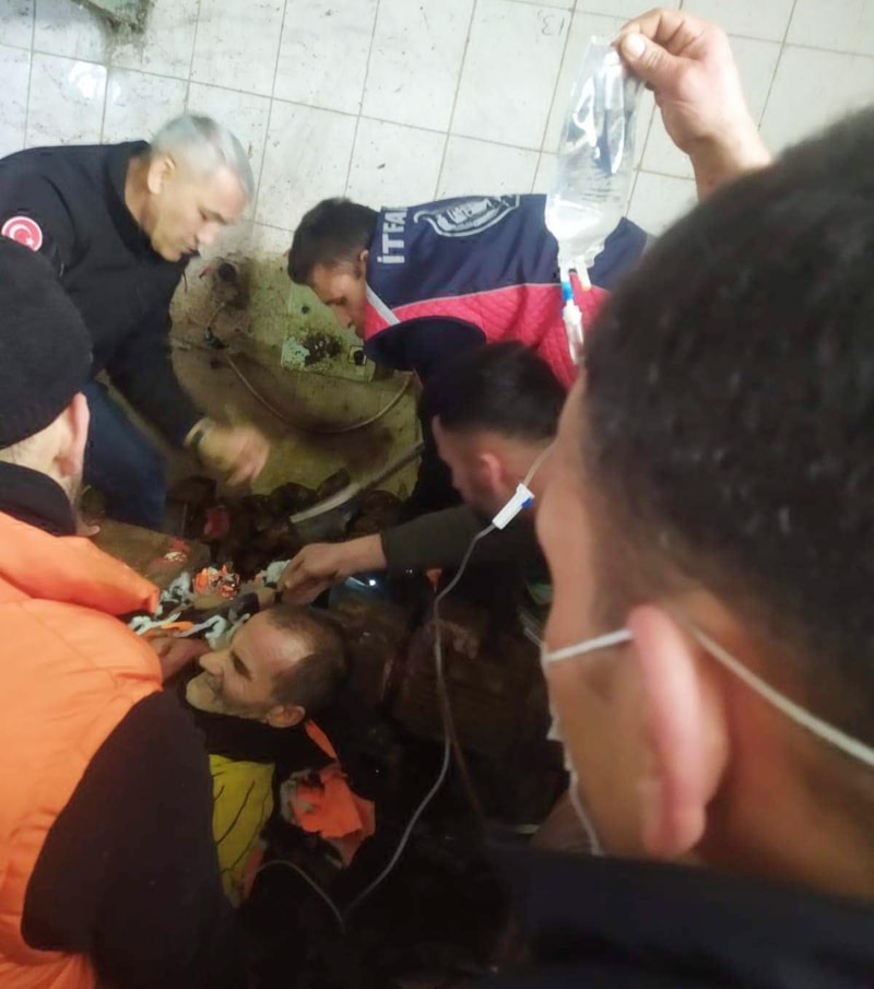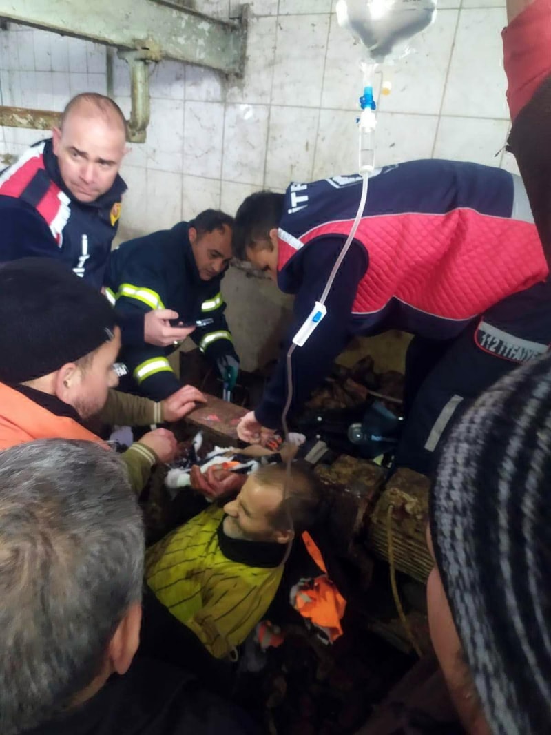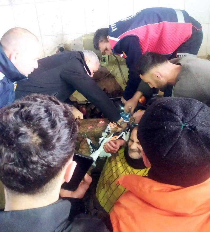 İhbar üzerine mezbahaya gelen itfaiye ekibi, kolunu sıkıştığı yerden çıkardığı Çakmak’ı, hazır bekleyen sağlık ekibine teslim etti.