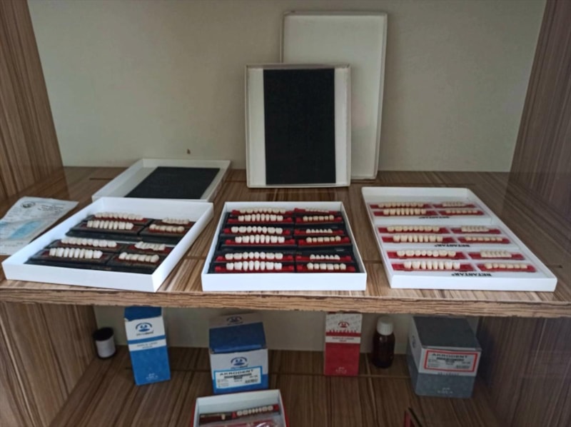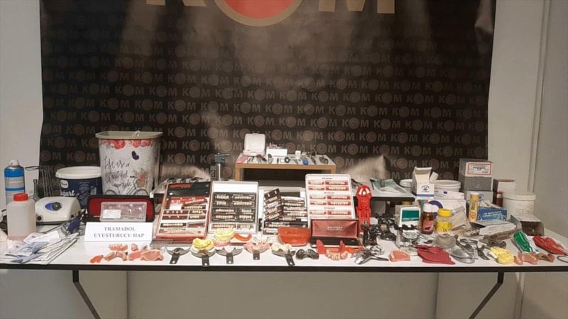 Klinikte yapılan aramada diş tedavisinde kullanılan ilaç, alet ve çeşitli malzemeler ele geçirildi.