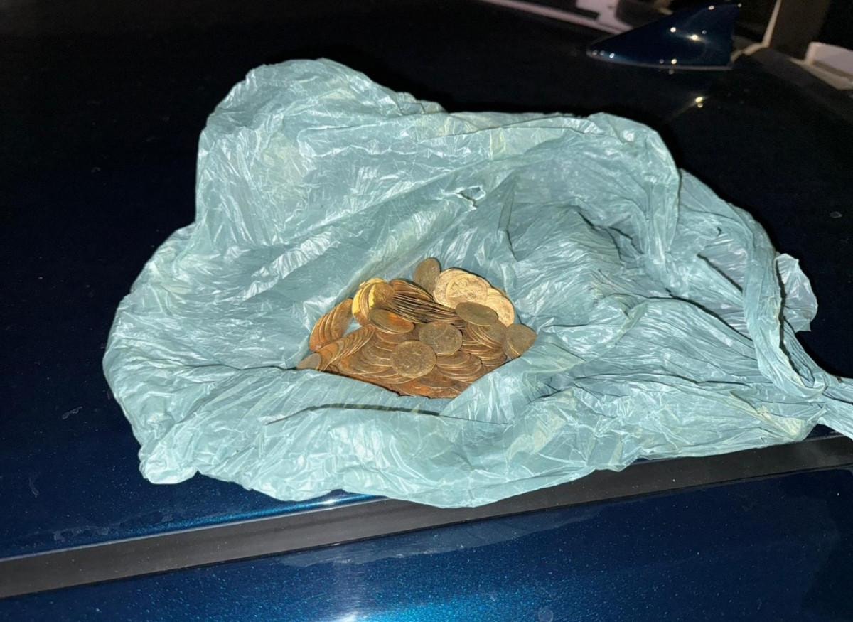 Ekipler tarafından zanlı gözaltına alındı, sikkelere el konuldu.