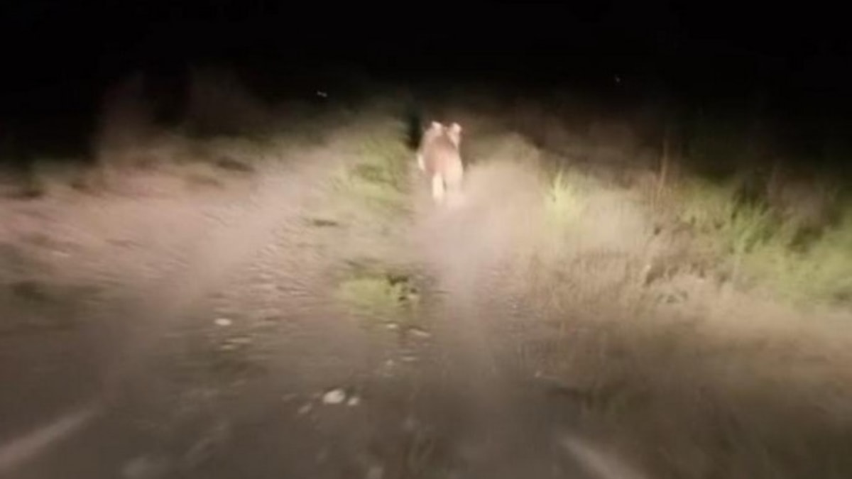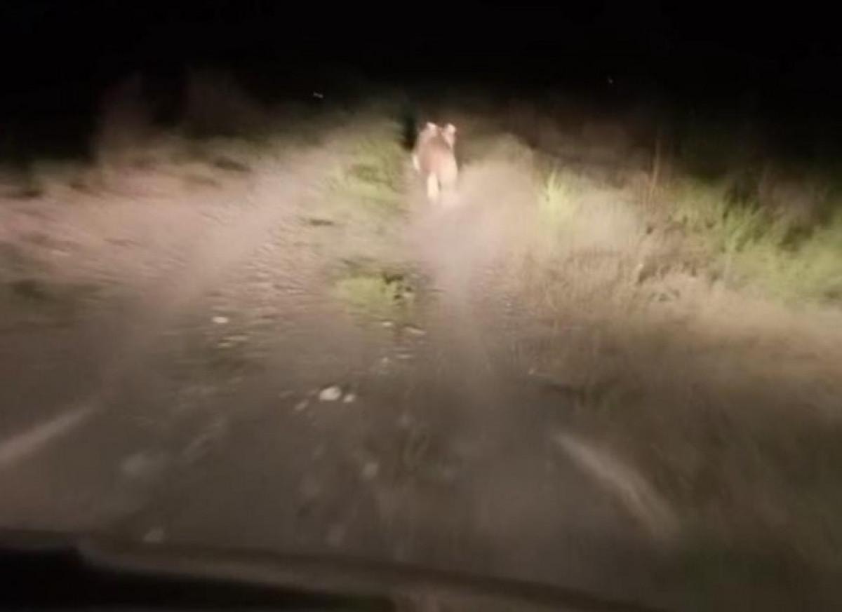 Kaçmaya başlayan ayıyı iki vatandaş, araçlarıyla kovaladı. Hızla yaklaşan araçları fark eden ayı, kısa süreli koşunun ardından yoldan çıkarak dağlık alana yöneldi.