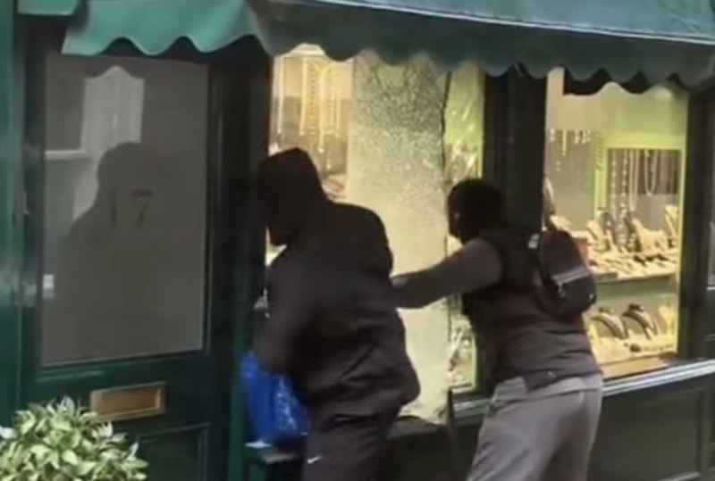 Mağazanın dışından, mücevherlerin sergilendiği vitrine yönelen saldırganlar; rafları koruyan camekanı ellerindeki aletlerle kırmaya başladı.