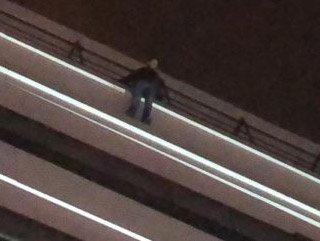 Burada çatının terasından dışarı sarkan genç, korkuluklara tutunarak bekledi. Bu sırada çatıdaki genci fark eden çevredeki insanlar, itfaiyesi, polis ve 112 ekiplerine durumu bildirdi. Kısa sürede bölgeye intikal eden ekipler, caddeye güvenlik şeridi çekerek yolu trafiğe kapattı. Ardından polis ekipleri Mevlüt B.’yi ikna için yukarı çıkarken, itfaiye ekipleri de iş merkezi önünde atlama yatağını hazırladı.