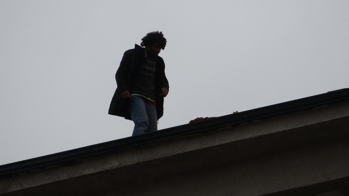 Çatıda uzun süre polislerin çabalarına yanıt vermeyen Hasan İ., çatıda halay çekti ve kiremitleri kafasıyla kırarak tehlikeli hareketlerde bulundu.