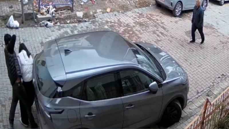Bilal E. ardından kadını arabanın arkasına sıkıştırarak darbetmeye başladı.