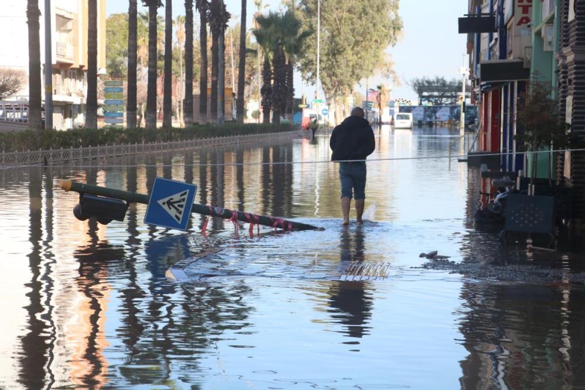 İskenderun’da fırtına etkisini yitirmesine rağmen caddelerdeki su çekilmedi.