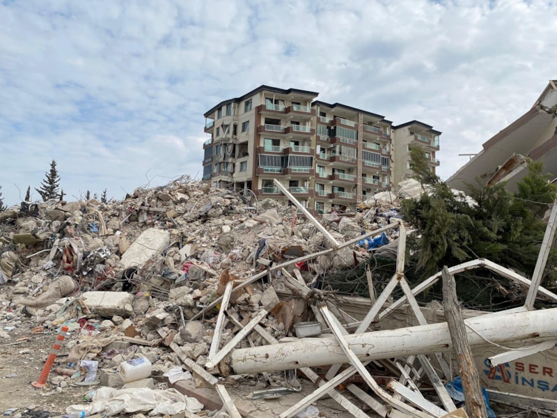 5 bloktan oluşan sitenin 4 bloğunun yıkıldığı, 1 binanın ise zemin katlarının çöktüğü ve ağır hasar aldığı görüldü.
