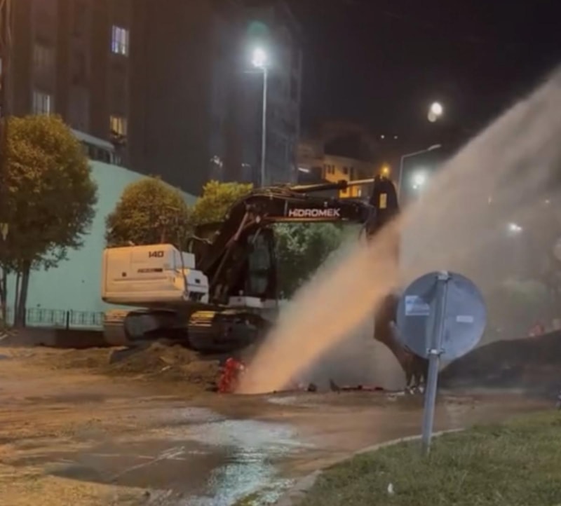 Kağıthane'de iSKİ çalışması sırasında ana isale borusunda patlama meydana geldi.