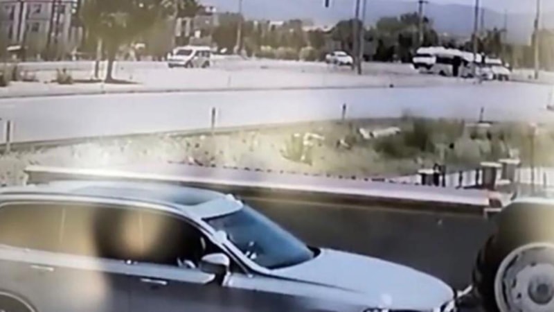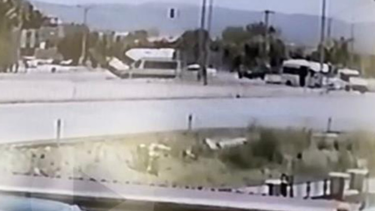 Kaza anı çevredeki bir iş yerinin güvenlik kamerası tarafından saniye saniye kaydedildi.