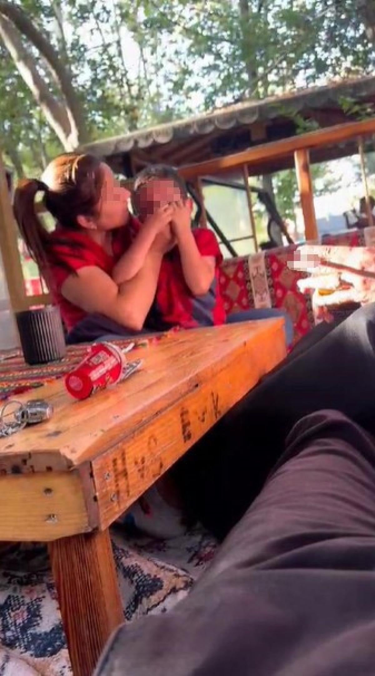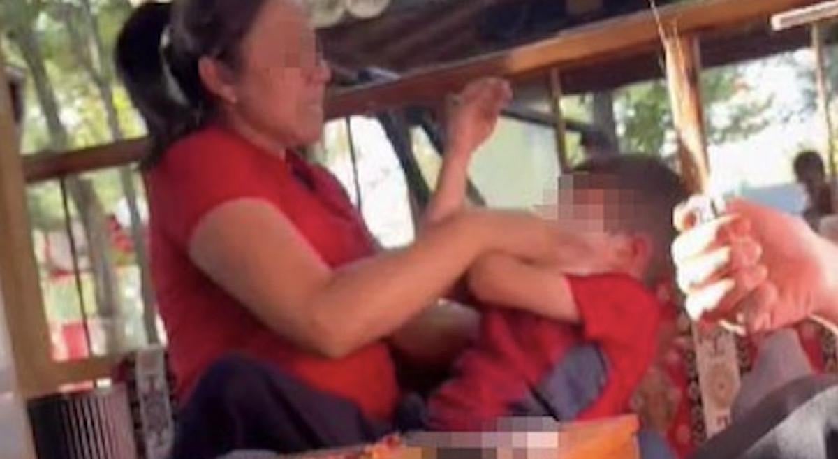 Isparta'da bir süre yaşadıktan sonra Burdur'a yerleşen Kerime Ö., Ayazmana'daki bir işletmede çocuğunu darbederken cep telefonu kamerasına yansıdı.