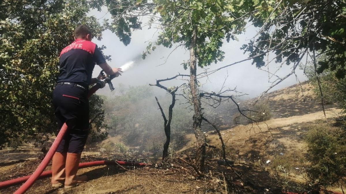 Yangında yaklaşık 23 dönümlük alanda bulunan palamut ağaçlarının kısmen zarar gördüğü bildirildi.