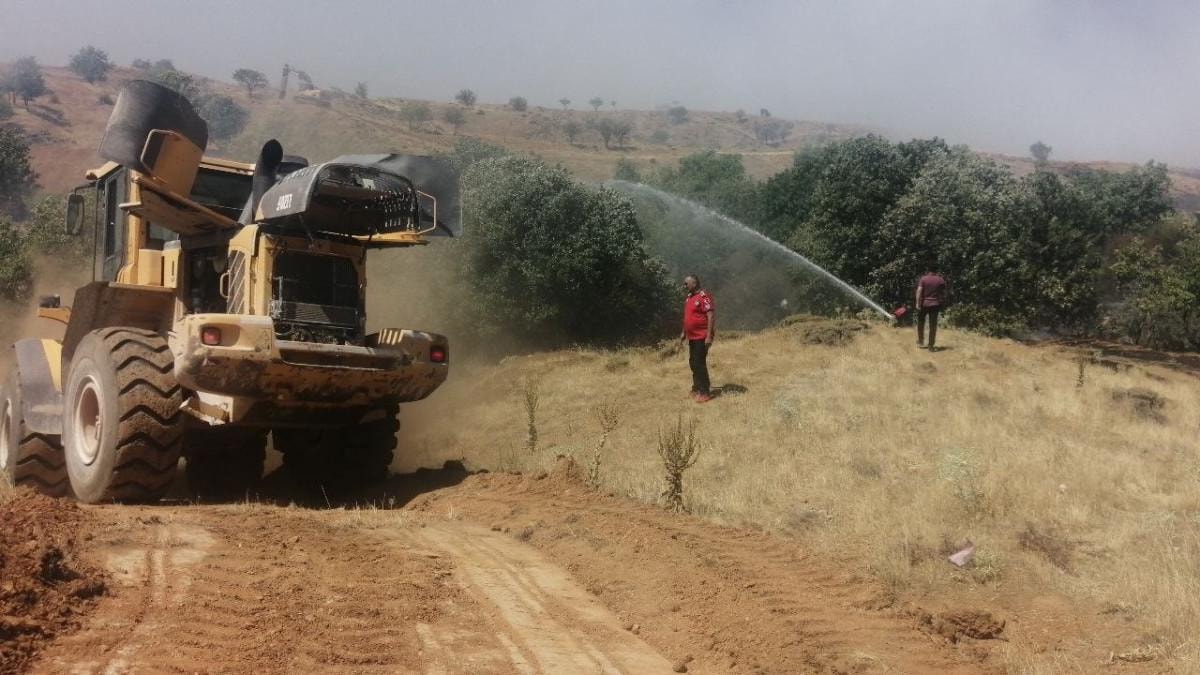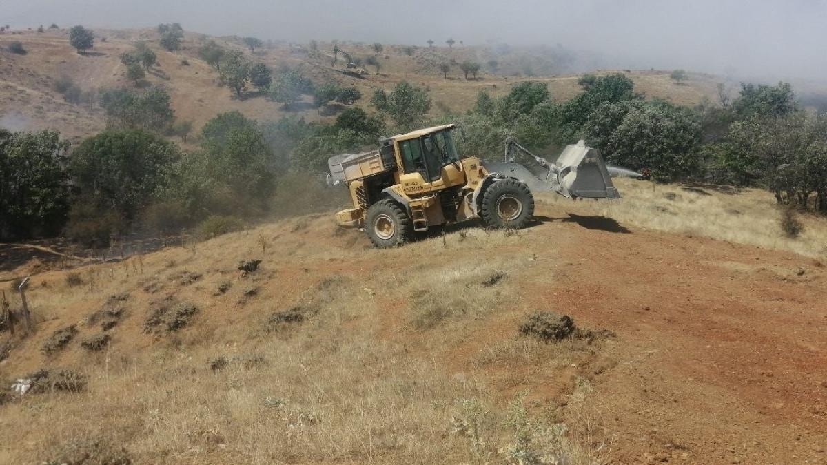 Ekipler olay yerine ulaşana kadar yangının yayılmasını önlemek amacıyla iki kepçe ile arazide kürüme çalışması yapıldı.