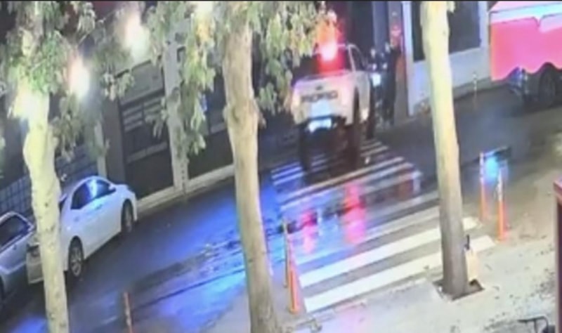 O sırada okulun demir parmaklıklarının arkasında bulunan Gençer'in demirlerin altında kaldığı, diğer iki kişinin ise son anda çarpılmaktan kurtulduğu anlar kameralara yansıdı.