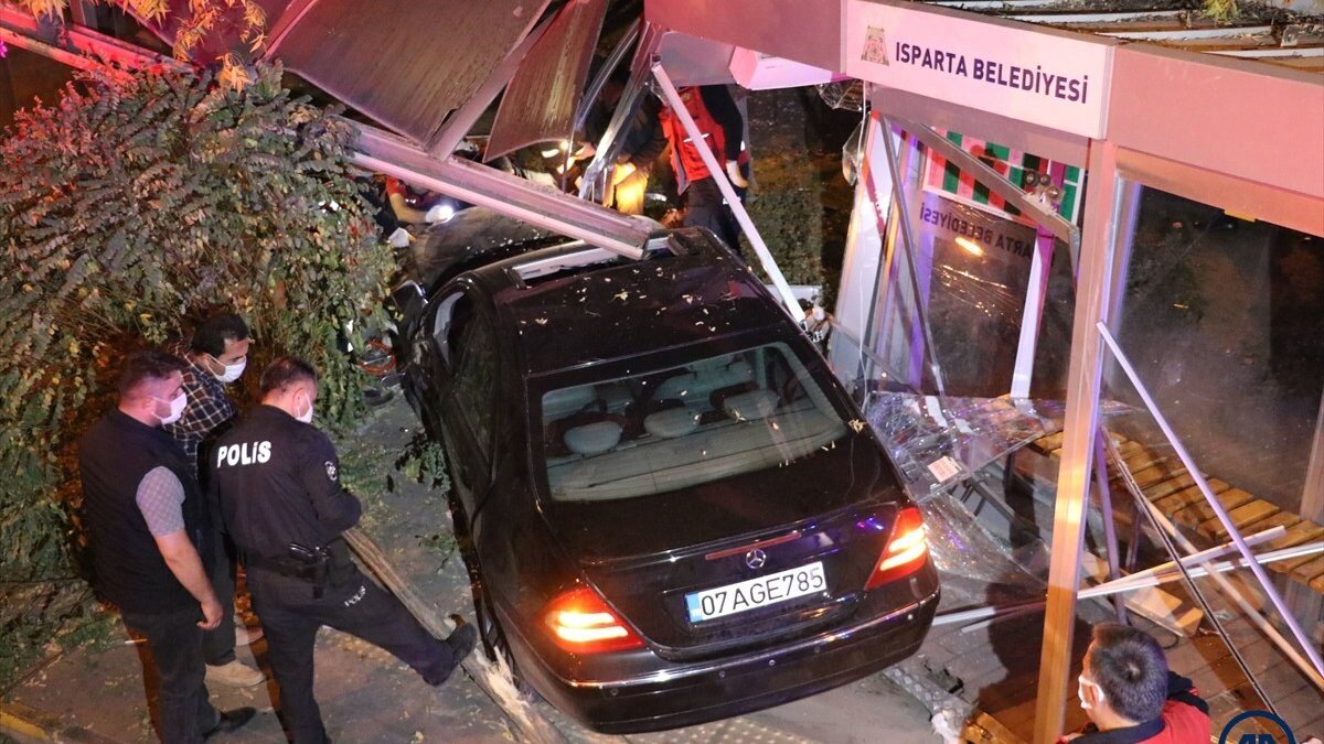 Isparta'da kimliği henüz tespit edilemeyen sürücü, İstanbul Caddesi'ndeki otobüs durağına çarptı.