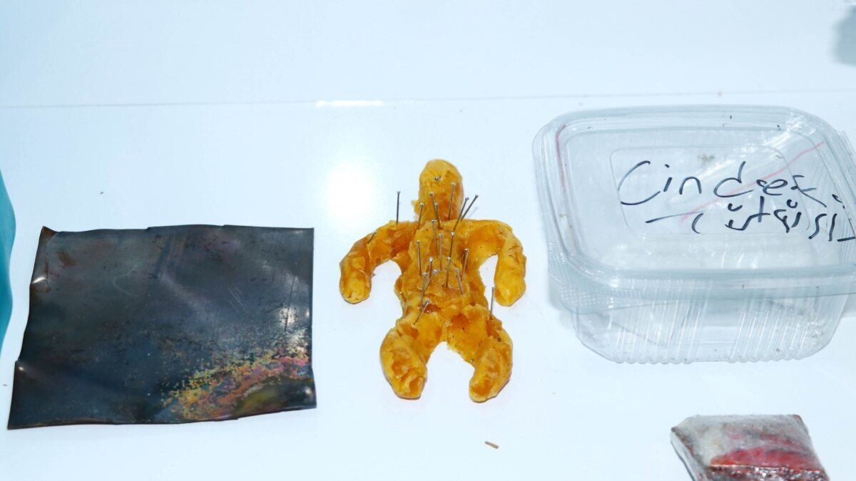 Çeşitli kitap ve objeler, muska, çok sayıda doküman ve uyuşturucu madde ele geçirildi. Şüpheli E.D. ise kent merkezinde yakalandı. E.D.'nin üzerinde 10 bin, evinde 15 bin 200 olmak üzere 25 bin 200 liralık sahte banknot ele geçirildi.