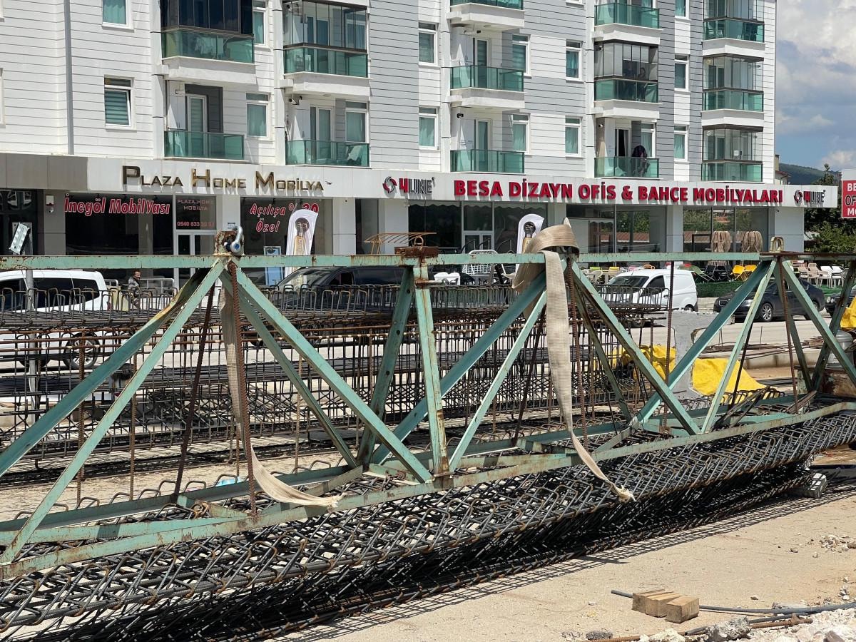 Isparta'da karayolları ekiplerinin koordinesinde gerçekleşen araç üst geçit köprüsünde vinçle yapılan kaldırma çalışmaları sırasında demir yüklü halat bir anda koptu.