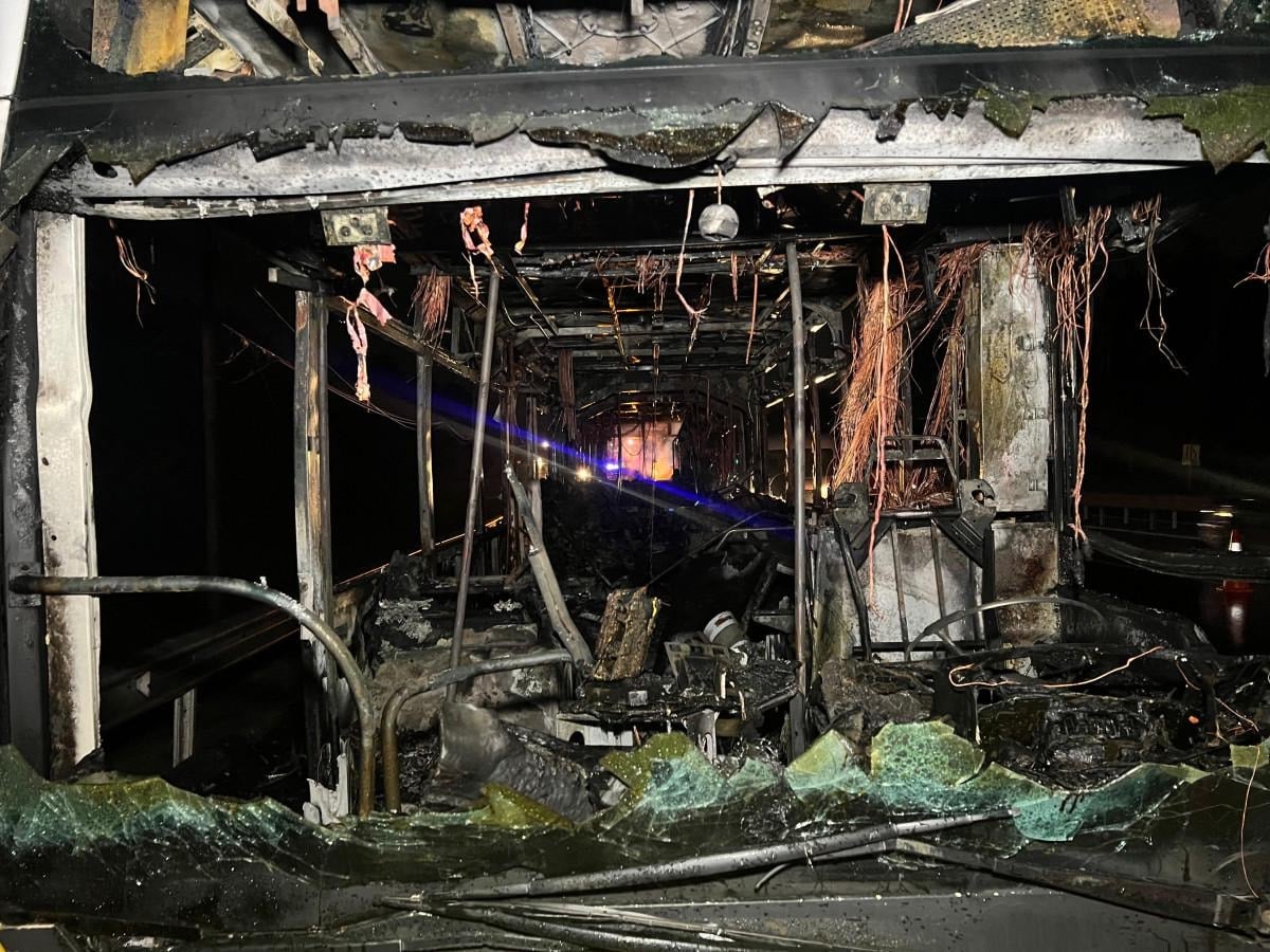 Yangın nedeniyle otobüs kullanılamaz hale geldi.
