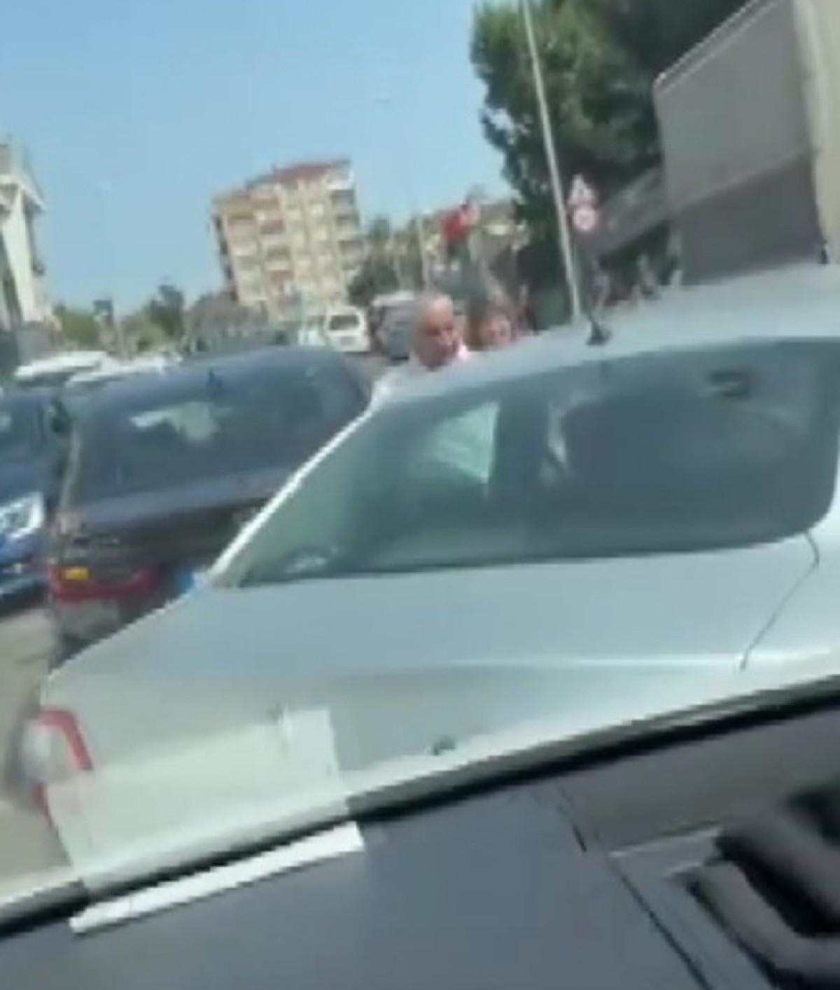 Tartışmanın büyümesi üzerine çift, araçtan inerek diğer sürücünün otomobiline yöneldi.