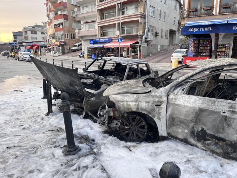 Olayda ölen ya da yaralanan olmazken araçların alev alev yandığı o anlar ise çevredeki vatandaşların cep telefonu kameralarıyla saniye saniye görüntülendi.