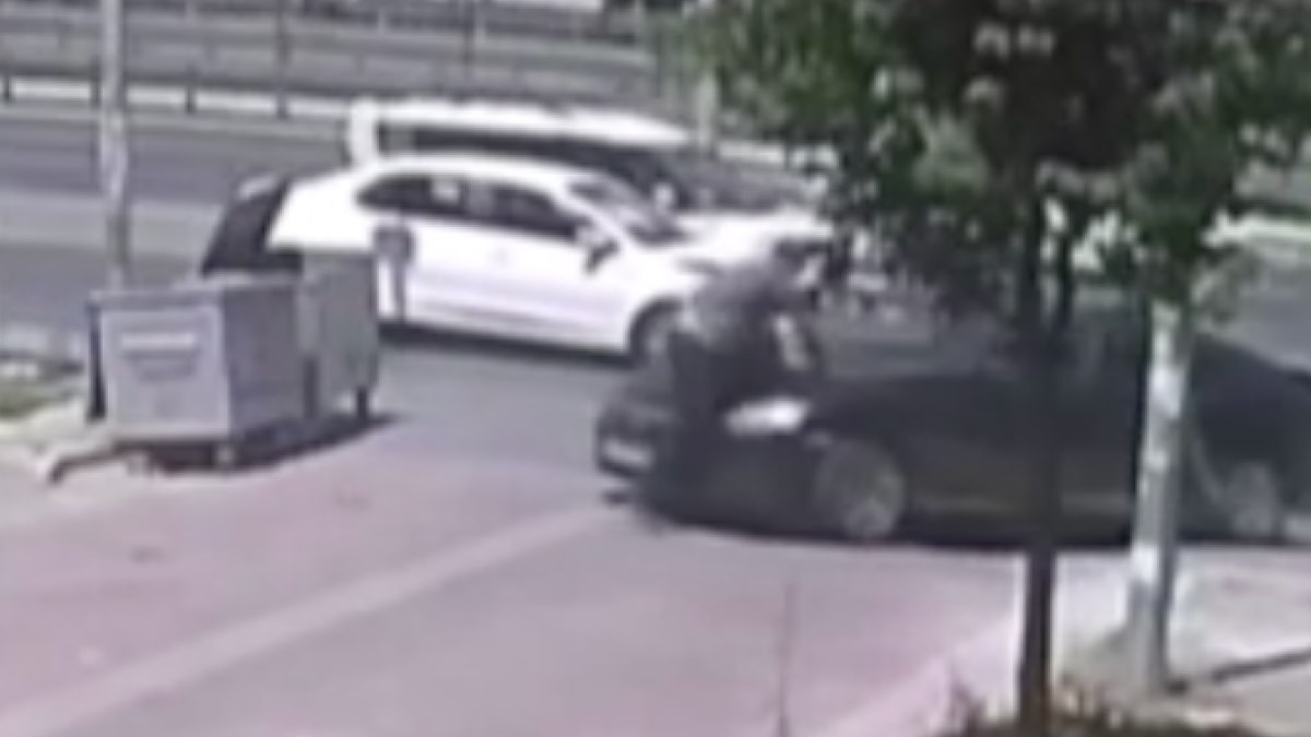 Çarpmanın etkisiyle savrulan otomobil, yolun karşısına geçmeye çalışan yayaya vurdu.